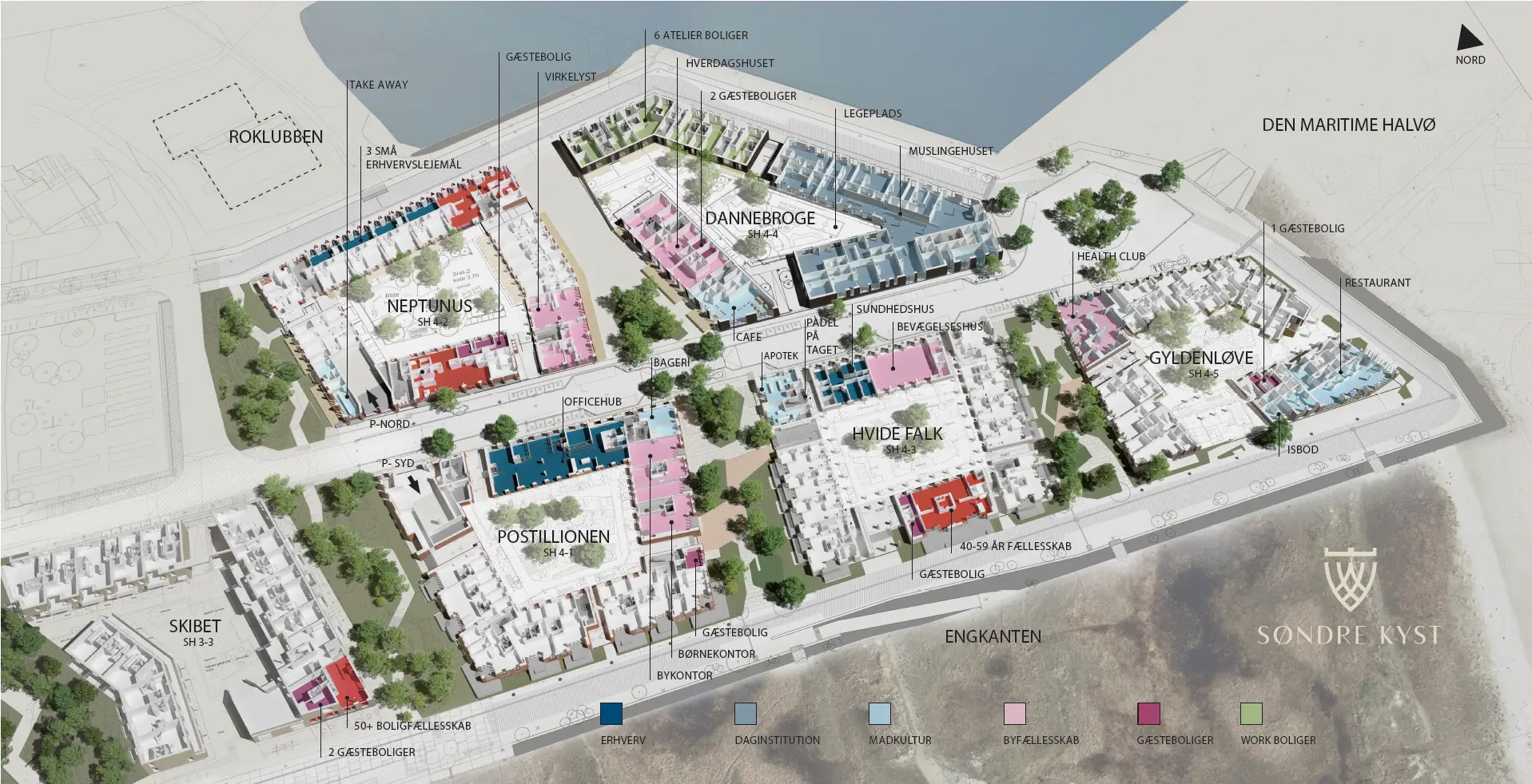 Når du er samme sted i livet som dine naboer, er det lettere og mere oplagt at mødes i naturlige fællesskaber. Fællesfaciliteterne og byfællesskabet er en kærkommen tilføjelse, der forsøder dit liv som beboer i Søndre Kyst. Uanset hvor du er i livet, kan Søndre Kyst blive dit hjertes havn. Dit hjem.