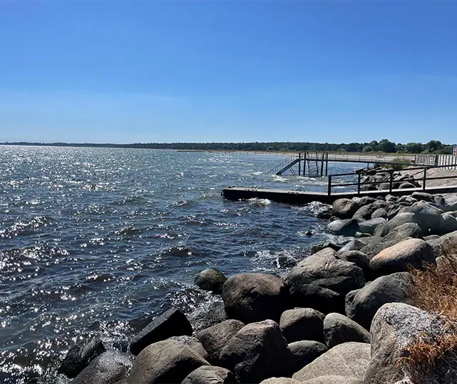 Lige ved hånden har du stranden. En smuk sandstrand med hang til lavvande, perfekt til de mindstes badeture og timelange leg i strandkanten. Strandens siv skaber små, naturlige oaser, der lokker følelsen af fritid og frihed frem.